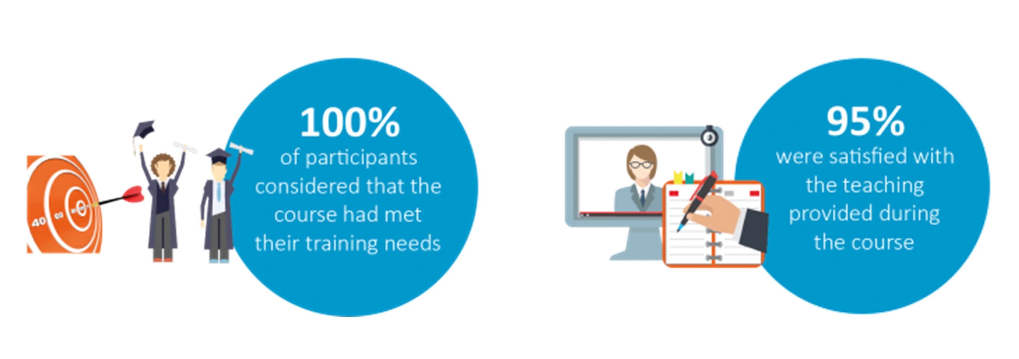 The past editions of the Course were a great success and received positive feedback from participants, particularly as regards the high quality of this training. Indeed, 100% of participants of the 2020 edition considered that the course had met their training needs, 100% responded that they were satisfied with this training and, 95% were satisfied with the teaching provided during the course.